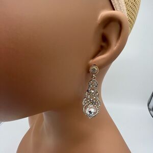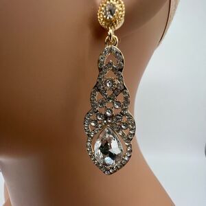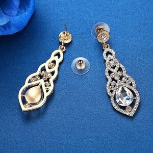These stunning drop earrings feature a beautiful blend of gold and silver tones, perfect for adding a touch of elegance to any outfit. The intricate design and sparkling accents make them a must-have accessory.