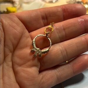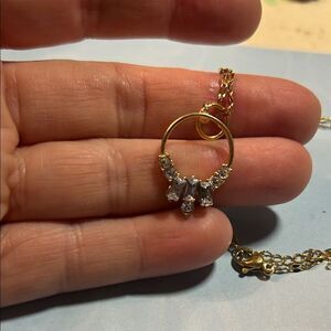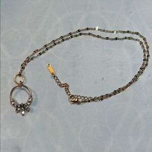 This elegant necklace features a stunning combination of gold and silver tones, perfect for adding a touch of sophistication to any outfit. The intricate design and shimmering accents make it a must-have accessory. Taken from a broken earring.
