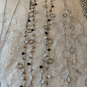 Three of these pieces are from Lucky Brand! This stunning set of gold and silver necklaces adds a touch of elegance to any outfit. Perfect for any occasion, these pieces are versatile and stylish. Great for the jewelry maker. Firm on price.