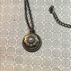 This elegant necklace features a stunning gold and silver pendant, perfect for adding a touch of sophistication to any outfit. The intricate design and classic colors make it a versatile accessory for any occasion. Approximately 9”. G80.