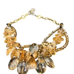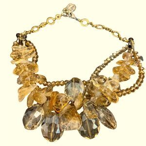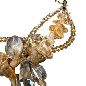 This stunning statement necklace features a blend of gold and silver tones, perfect for adding a touch of elegance to any outfit. Its unique design makes it a standout piece in any jewelry collection.