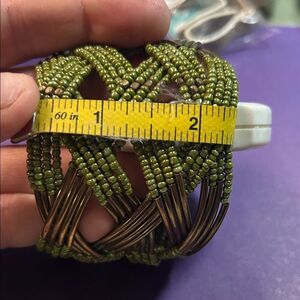 This stunning bracelet features intricate green beadwork, perfect for adding a touch of elegance to any outfit.