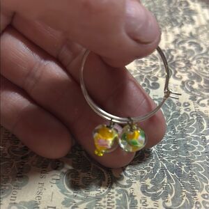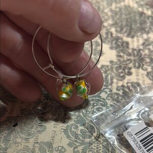 Add a touch of elegance with these stunning green and yellow hoop earrings. Perfect for any occasion.