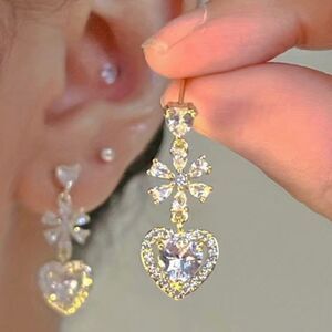 🔅🆕🔅 Elegant Heart Flower Simulated Diamonds Dangle Earrings✨