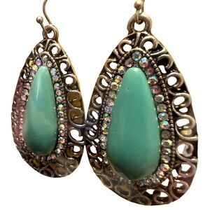 Elegant Man-Made Mint crystals Filigree Earring,NWT