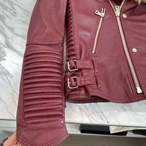 Elegant Maroon Leather Jacket with Faux Fur Collar