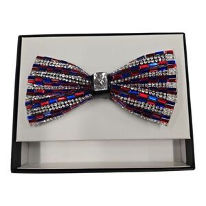 Add a touch of elegance to your outfit with this multicolor bow tie. Featuring a striking combination of red, blue, and black, this accessory is perfect for any formal occasion.