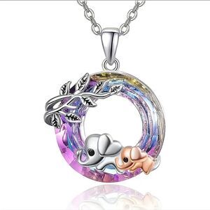 Elegant & Adorable Elephant Necklace with Mommy Elephant and Baby Elephant. Comes with card as shown.