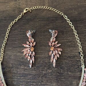 New , only no extender on necklace , This stunning jewelry set features a beautiful pink crystal necklace paired with matching earrings. Perfect for adding a touch of elegance to any outfit.
