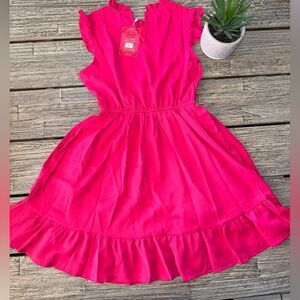 Step out in style with this elegant pink mini dress. Featuring charming ruffles, it's perfect for any occasion. Elevate your wardrobe with this must-have piece.