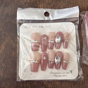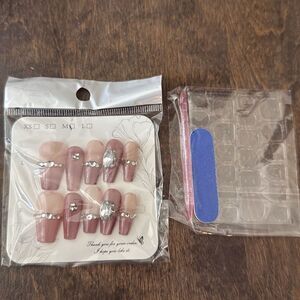 New, Stylish press-on nails in pink and nude shades. Adorned with rhinestones for a chic look.