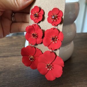 Add a touch of elegance with these stunning red floral drop earrings. Perfect for any occasion, these earrings will make a bold statement.