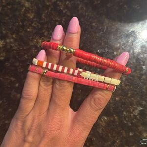 Elegant Red and Pink Beaded Bracelet Set 3 Stretch Bead Bracelets NEW