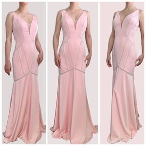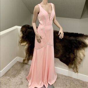 Elegant Rose Pink V-Neck & Cut-out Back Evening Dress