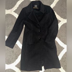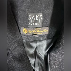 Saks Fifth Avenue Coat made with Loro Piana Wool, combines timeless elegance with a classic silhouette. Crafted in a deep black/grey hue, it offers a sophisticated look perfect for formal occasions. The coat's structured design ensures a polished appearance, making it a versatile addition to any wardrobe.