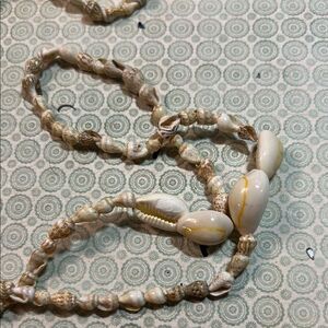 This elegant shell necklace features a beautiful blend of cream and tan colors, perfect for adding a natural touch to any outfit. Ideal for casual or beachwear. G106 approximately 19”
