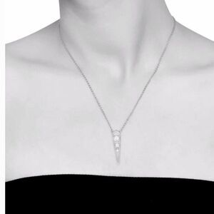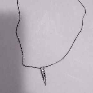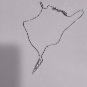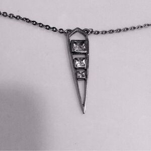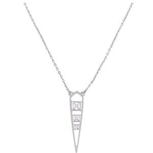 This elegant silver necklace features a striking geometric pendant, perfect for adding a touch of sophistication to any outfit. Its sleek design makes it a versatile accessory for any occasion.
