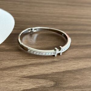 This elegant silver bracelet adds a touch of sophistication to any outfit. Perfect for any occasion.
