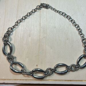 This elegant silver chain necklace and bracelet adds a touch of sophistication to any outfit. Perfect for both casual and formal occasions. Approximately 11”