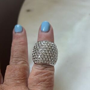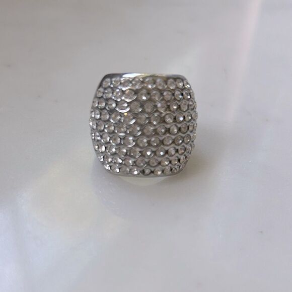 Elegant Silver Crystal Cocktail Ring size 7