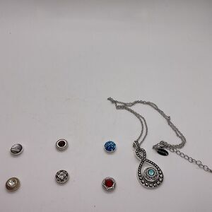 Elegant Silver Toned Pendant Necklace with Interchangeable Charms