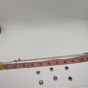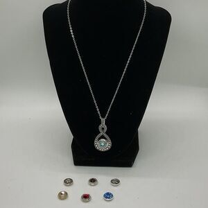 This elegant silver toned pendant necklace features a stunning design with interchangeable charms. Marked Shutterfly.