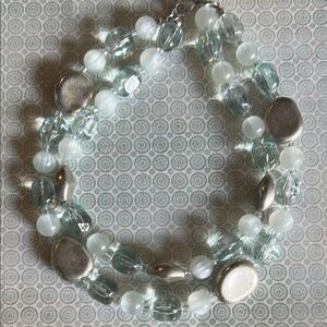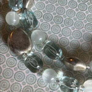 This stunning necklace features a blend of silver and clear beads, perfect for adding a touch of elegance to any outfit. Its unique design makes it a versatile accessory for any occasion. Approximately 8 “