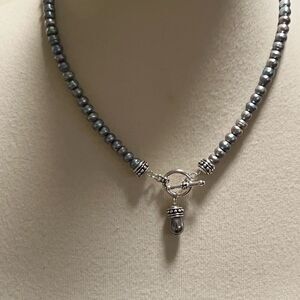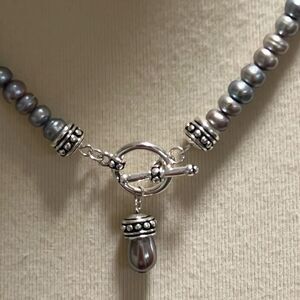 This elegant silver pearl necklace adds a touch of sophistication to any outfit. Perfect for any occasion.