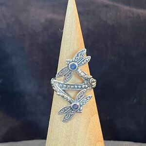 Elegant Sterling Silver Dragonfly Ring Kanchanaburi Blue Sapphires 0.25ctw