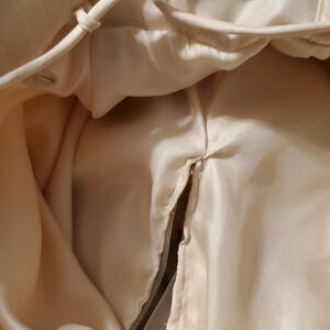 Stunning strapless cream gown featuring elegant sequin details. Perfect for formal occasions.