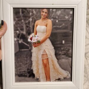 A-line, multi-tiered ruffled dress, similar in style to those offered by the online retailer KissProm. The tiered ruffles and embellished details align with the aesthetic of dresses found on their website, particularly those categorized as prom or wedding dresses.