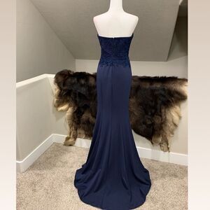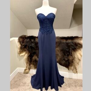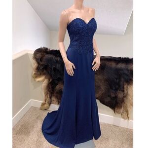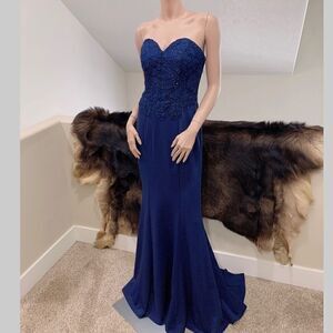 Elegant Strapless Floral Lace Appliqued with Beads Fishtail Gown