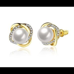 The elegant, Gold stud earrings with a round Cubic Zirconia and Pearl Earrings