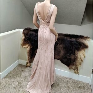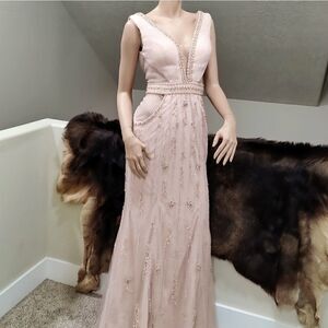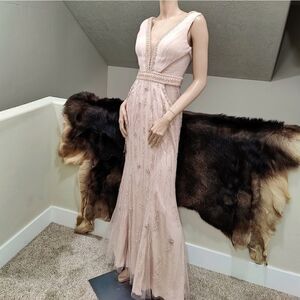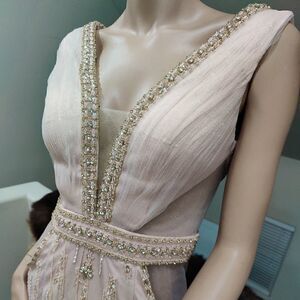 Elegant V-Neck All Over Beaded Glitter Haute Evening Dress