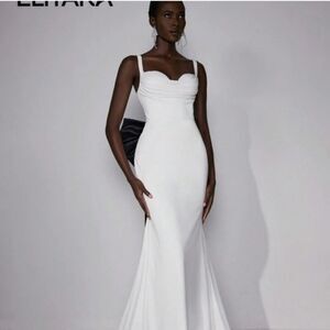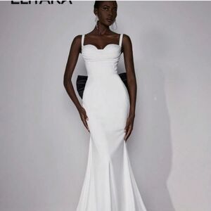 Stunning white gown with a fitted silhouette. Features a sweetheart neckline and elegant straps. Perfect for formal occasions.