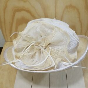 Elegant White and Cream Women's Hat By Aussie Austine Medium/Large