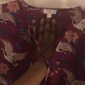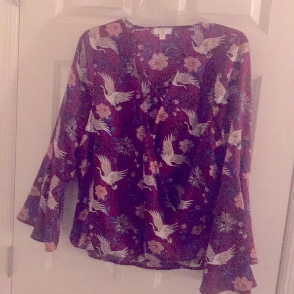 This blouse is so beautiful; it looks like you’re wearing a painting or piece of artwork. The flowy and elegant arms make for a really fun look! You’re sure to get numerous compliments on this blouse. Says medium but could fit a large as well. Only worn a few times!