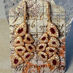 Elegant rose gold-filled sterling pave ruby Gold nugget drop earrings