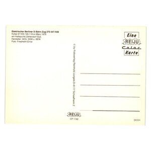 This vintage REJU postcard features the electric Berlin S-Bahn Train 275 047/048 at Zehlendorf Süd in March 1976. Printed with fine detailing by REJU.