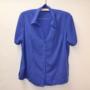 Element Blue Blouse Button Front Size 2XL Short Sleeves Collar Shldr Inserts
