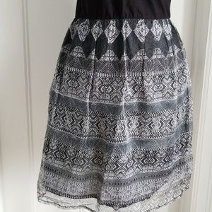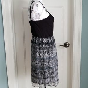 This is a great dress! It features adjustable straps, sweetheart neckline, double thick lining in bodice, and cup shaping w/out underwire. Skirt is fully lined. Top knit: 92% Cotton/8% Lycra. Bottom fabric: 10% Cotton lining and 100% Nylon shell. Dress runs true to size, but cups are a little small. Worn a handful of times!