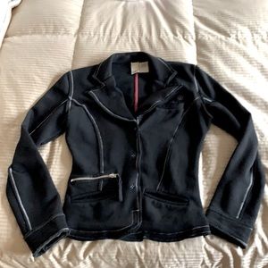Black Fleece Jacket with snap closure. I bought this jacket in Maui. It’s in excellent condition. It’s cute with jeans. I love this jacket but it’s to small for me now.
