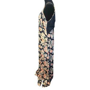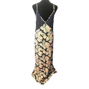 Element Jessamyn Floral Printed Lace Inset Maxi Dress in Navy Large