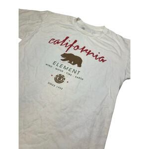 Selling a men’s Element graphic tee in white featuring the California bear with “California” in red script across the front and the Element logo underneath.