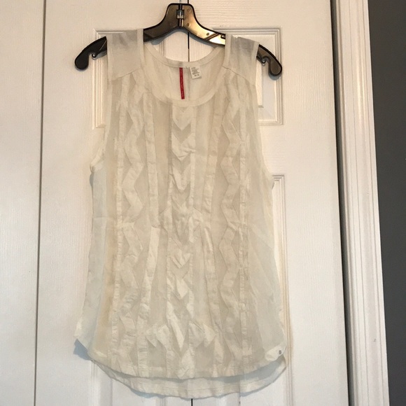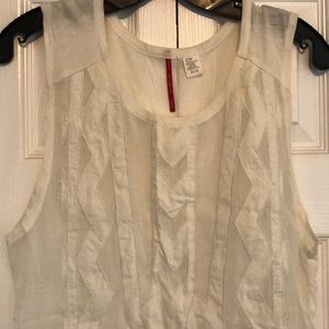 Sheer chiffon material in the front. Light weight sheer material in the back. No flaws.