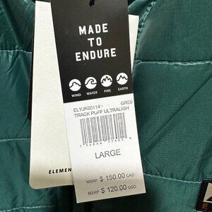 Element Wolfeboro Coat Size L Green Track Puffer Quilted Insulated Softshell NWT