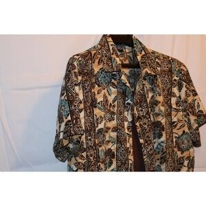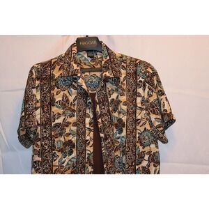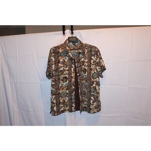 Element brown floral one piece blouse short sleeve Sz Large sewn in layering..