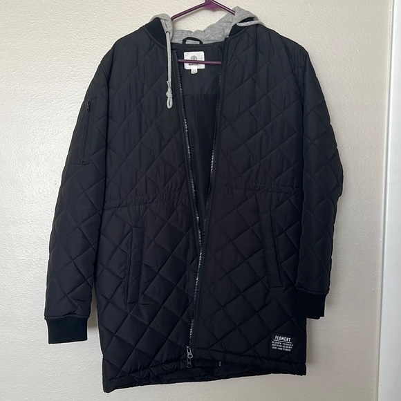 Never been worn Element Jacket with hoodie. It’s a little longer and hits about midthigh on a 5’5” person.