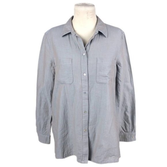 Elemente Clemente Gray Cotton Silk Button Up Long Sleeve Tunic Blouse Size Small