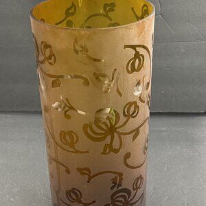 Elements Art Glass Vase 11x5 Amber Brown Floral Heavy 2.5lbs Vintage Elegant